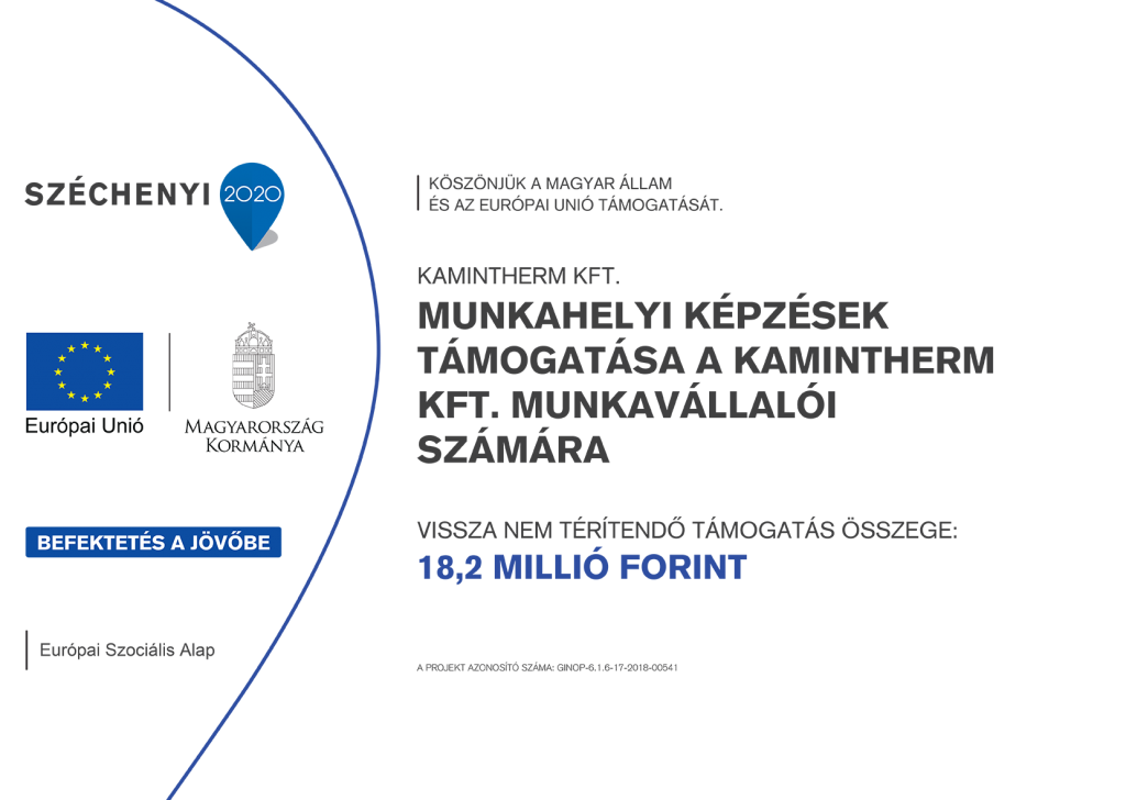 Projekt címe: Munkahelyi képzések támogatása a Kamintherm Kft. munkavállalói számára